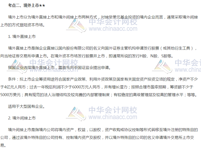 如何才能在金融市场站稳,自然是将基金从业证书拿下了。2019年基金从业资格考试,你准备好了吗?正保会计网校为您收集整理了基金从业资格考试《私募股权投资》第七章高频考点:境外上市,快来学习吧!