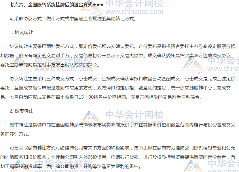 基金从业《私募股权投资》高频考点:全国股转系统挂牌后的退出