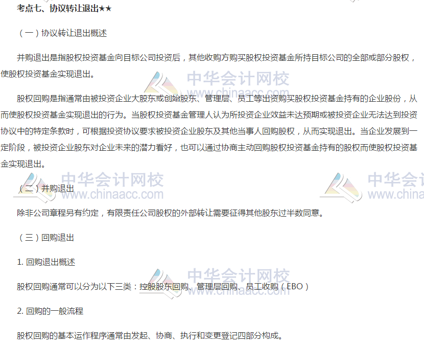 如何才能在金融市场站稳,自然是将基金从业证书拿下了。2019年基金从业资格考试,你准备好了吗?正保会计网校为您收集整理了基金从业资格考试《私募股权投资》第七章高频考点:协议转让退出,快来学习吧!