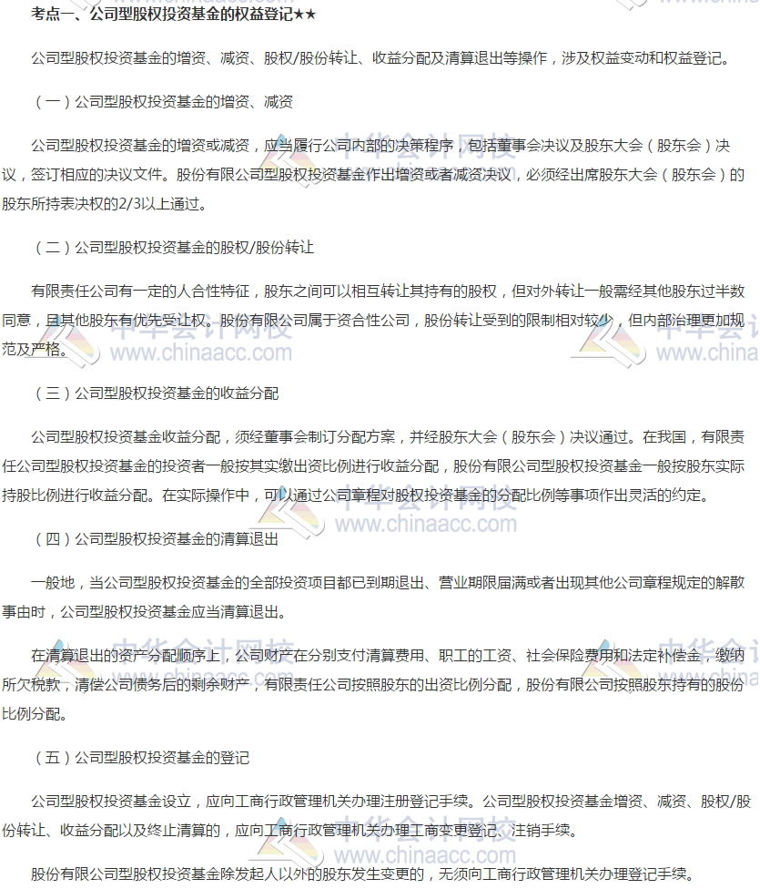 如何才能在金融市场站稳,自然是将基金从业证书拿下了。2019年基金从业资格考试,你准备好了吗?正保会计网校为您收集整理了基金从业资格考试《私募股权投资》第八章高频考点:公司型股权投资基金的权益登记,快来学习吧!