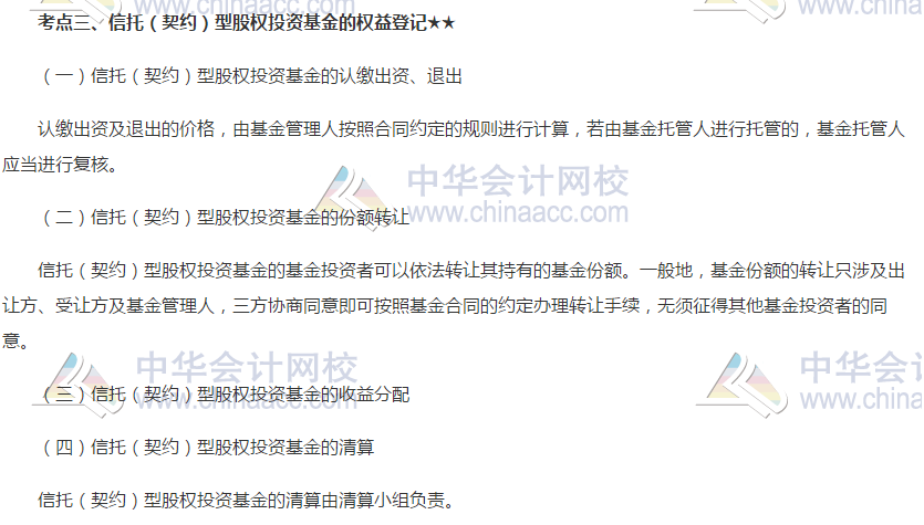 如何才能在金融市场站稳,自然是将基金从业证书拿下了。2019年基金从业资格考试,你准备好了吗?正保会计网校为您收集整理了基金从业资格考试《私募股权投资》第八章高频考点:信托(契约)型股权投资基金的权益登记,快来学习吧!