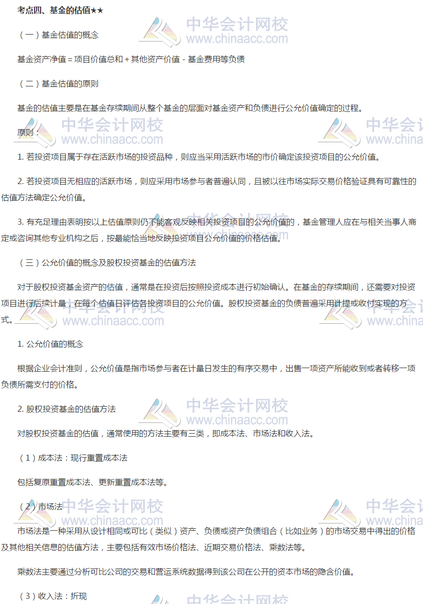 如何才能在金融市场站稳,自然是将基金从业证书拿下了。2019年基金从业资格考试,你准备好了吗?正保会计网校为您收集整理了基金从业资格考试《私募股权投资》第八章高频考点:基金的估值,快来学习吧!