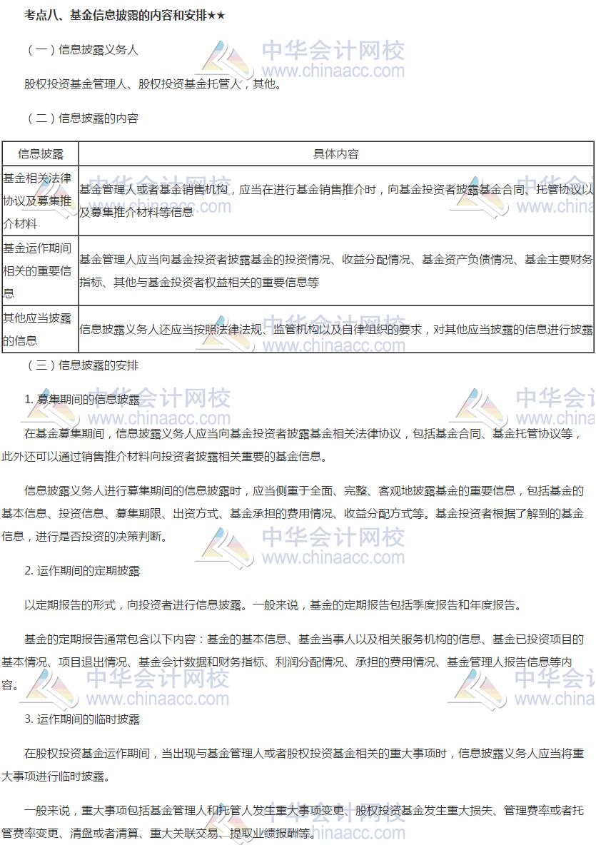 如何才能在金融市场站稳,自然是将基金从业证书拿下了。2019年基金从业资格考试,你准备好了吗?正保会计网校为您收集整理了基金从业资格考试《私募股权投资》第八章高频考点:基金信息披露的内容和安排,快来学习吧!
