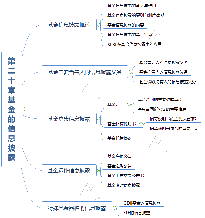 以下是2020年基金从业《基金法律法规、职业道德与业务规范》第二十章思维导图: