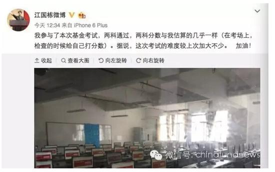 还有80后私募新锐广东莞香资本董事长江国栋也说两科通过,而且分数和自己估算的几乎一样,因为当时在考场里面就给自己打分了。