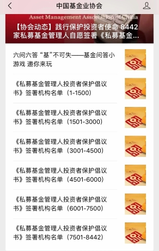 12月25日,协会发布史上最长、字数最多的名单。共有8442家私募基金管理人自愿签署《私募基金管理人投资者保护倡议书》。全部名单13万字。