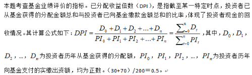 王某2008年初向A基金投资了200万元,基金合同约定基金管理费为每年2%,2010年末和2012年末,王某分别收到项目退出回款30万元和70万元,于2012年末王某持有基金份额的估值为300万元,2012年末王某投资A基金的已分配收益倍数(DPI)为( )。
