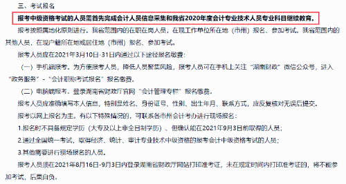 (2)湖南:需首先完成2020年度会计专业技术人员专业科目继续教育。