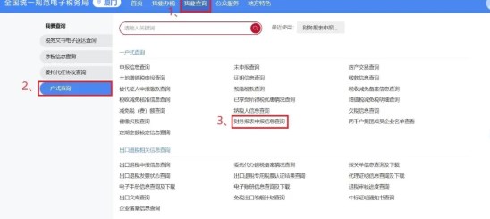 登录电子税务局,依次选择【我要查询】-【一户式查询】-【财务报表申报信息查询】。