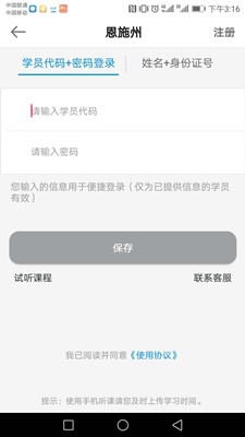 凭学员个人的学员代码、密码或姓名、身份证号进行登录;