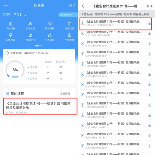 江苏省如皋市会计人员继续教育移动看课学习流程