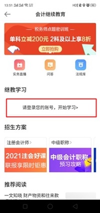 在会计继续教育应用登录之前,请先登录电脑进行选课,然后凭学员个人信息进行登录;