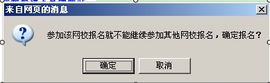 学员可以点击课程介绍查看详细的课程信息,看完课程介绍以后选择网校进行报名学习,一个学员只能选择一所网校进行报名,您在选择的时候会弹出一个提示信息: