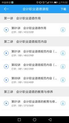 “浙江注册会计师继续教育移动看课”支持智能系统的手机和平板电脑,安装后可把继续教育规定的课程下载学习,并可随时点击移动应用中的“同步学习记录”,将本地学习时长同步至继续教育中心。