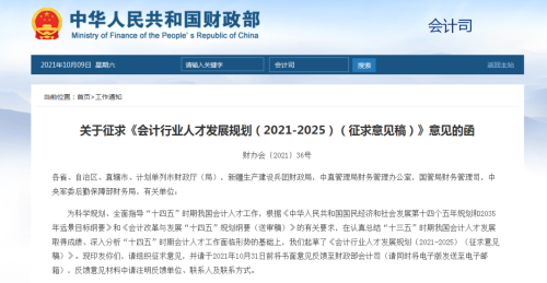 10月8日,财政部会计司发布通知:关于征求《会计行业人才发展规划(2021-2025)(征求意见稿)》意见的函。征求意见稿中提出了6大方面,共计29条的重大内容,包括初级会计一年多考、会计考试与CPA考试科目互认、与研究生教育衔接机制等重点改革方向。