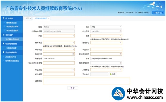 点击左侧个人中心中的历史数据获取——历史查询/打印,即可将之前审核过的继续教育记录打印出来。
