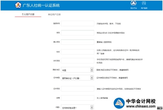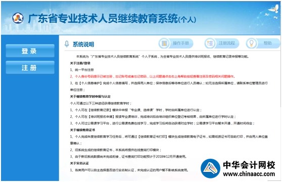 登录广东省人力资源和社会保障厅:,选择“政务服务”¬——“业务直通车”——“继续教育管理系统”——“广东省专业技术人员继续教育管理系统(新版)”,点击个人入口后先进行个人用户注册。
