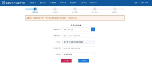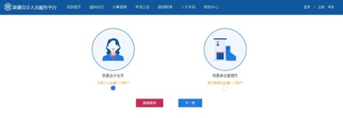 打开新疆会计人员服务平台(),新学员第一次进入请先点击“注册”,选择角色后填写会员注册信息。
