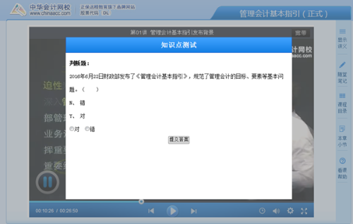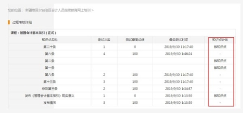 本地区的考核形式分为两种,一种为听课过程中的知识点考核(如图5-1),若学员听课过程中未做知识点可以进行知识点查看并进行补做(如图5-2、图5-3);一种为考后的试卷考核。