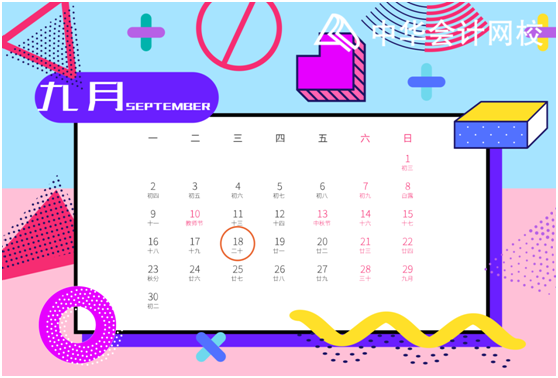 9月1日-18日 申报缴纳增值税、消费税、城市维护建设税、教育费附加、地方教育附加、文化事业建设费、个人所得税、企业所得税、核定征收印花税;