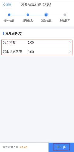 第五步:根据实际情况,选填减免税额和税收协定优惠事项,点击【下一步】。