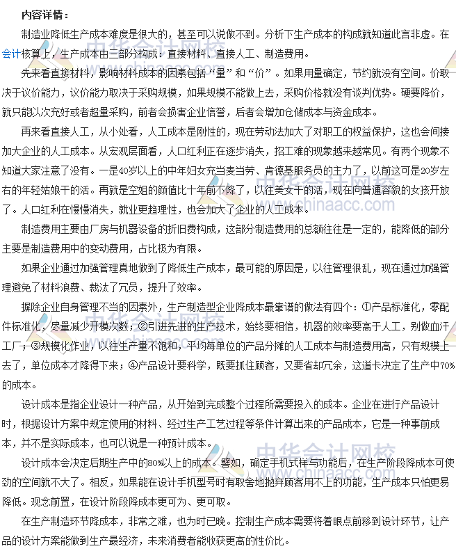 降成本费用是企业财务管理的永恒主题。我发现了一个规律:当企业提降成本费用时,往往面临危机,在走下坡路。为什么有这样的规律呢?一方面,企业经营顺畅时更看重开源,节流往往会往后放;另一方面,降成本费用并不容易,在生产与经营环节降本增效空间有限。甚至可以说,企业出现困境时提降成本费用更多地是为传递压力。