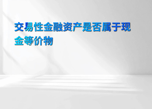 交易性金融资产和现金等价物在财务报表中的处理有何不同?答:在财务报表中,现金等价物通常被归类为流动资产中的现金及现金等价物,而交易性金融资产则被单独列示为交易性金融资产。现金等价物的价值相对稳定,因此在报表中通常以成本或公允价值计量。交易性金融资产则需要按照公允价值计量,并将公允价值变动计入当期损益。