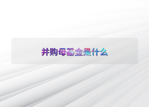 并购母基金是什么