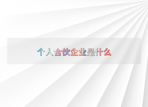 个人合伙企业是什么