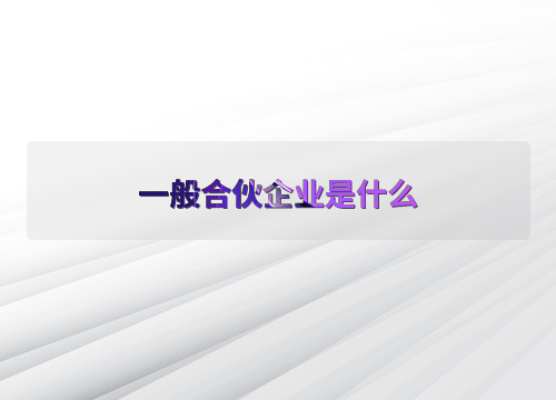 一般合伙企业是什么