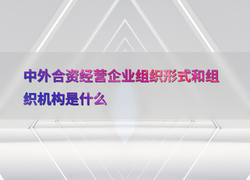 中外合资经营企业(Joint Venture, JV)是指中国的企业或其他经济组织与外国公司、企业和其他经济组织或个人,按照平等互利的原则,经中国政府批准,在中国境内共同投资设立的企业。