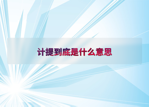 计提到底是什么意思