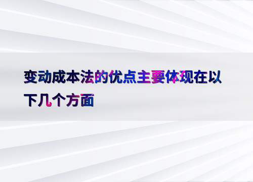 变动成本法的优点主要体现在以下几个方面