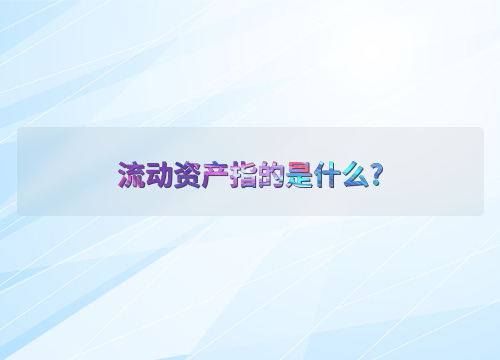 流动资产指的是什么?
