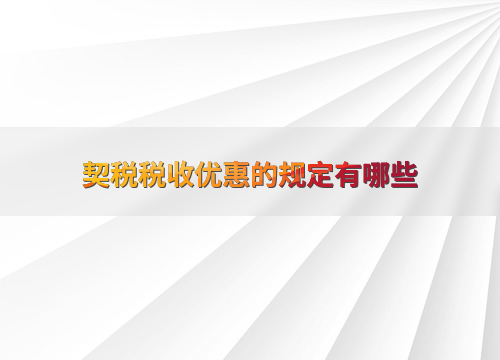 除了上述针对个人购房的优惠政策外,还有一些特定情况下的契税减免措施。