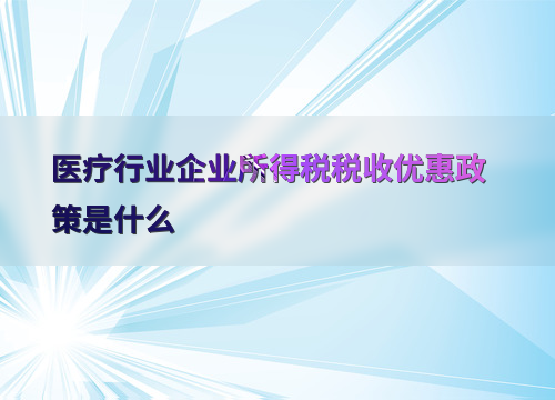 医疗行业作为国家重点支持的领域之一,享有特定的企业所得税税收优惠政策。