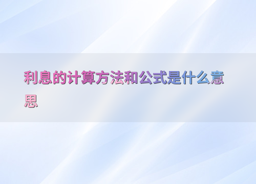 利息的计算方法和公式是什么意思