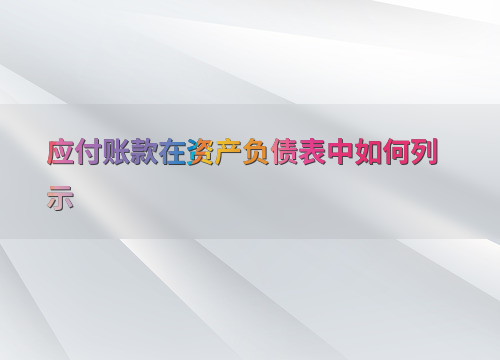 在资产负债表中,应付账款通常被列为流动负债的一部分。根据会计准则,所有将在一年内到期的债务都应归类为流动负债。因此,应付账款应当按照其账面价值进行列示,并且需要与其它流动负债项目分开列出,以确保报表使用者能够清晰地了解企业的短期负债结构。