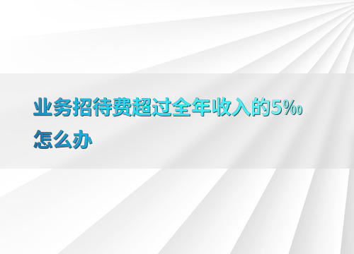 当业务招待费超过全年收入的5‰时,企业需要采取有效的措施来应对这一问题。一方面,企业可以考虑调整业务招待的方式和频率,尽量选择性价比更高的场所和服务,以降低单次招待的成本。另一方面,企业可以通过其他合法途径进行税务筹划,例如利用<= 5‰ × 销售(营业)收入的公式计算可扣除的最大金额,并在此基础上合理安排业务招待费的支出。