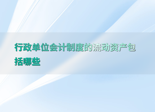 根据现行的会计制度,行政单位的流动资产主要包括:货币资金,包括库存现金、银行存款和其他货币资金;这些资金用于支付日常开支和应急需求。