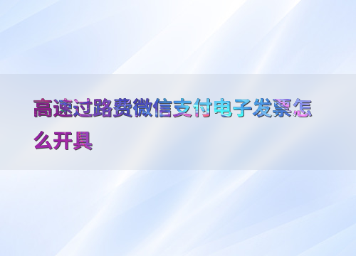 高速过路费微信支付电子发票怎么开具