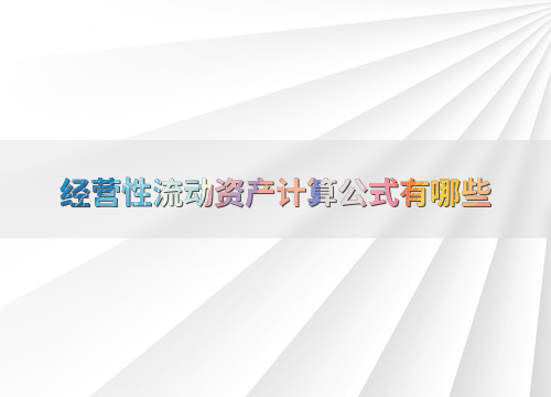 常见的经营性流动资产包括现金及现金等价物、应收账款、存货和其他流动资产。为了准确评估和管理这些资产,企业通常使用以下几种关键公式: