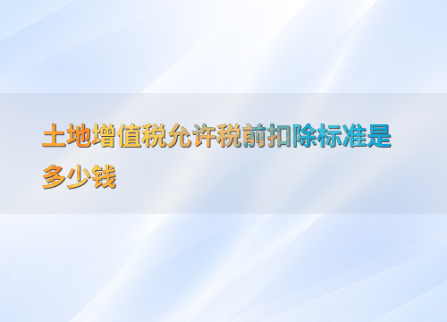 根据《中华人民共和国土地增值税暂行条例》及实施细则,允许税前扣除的标准主要包括:取得土地使用权支付的金额、房地产开发成本、房地产开发费用、与转让房地产有关的税金和其他扣除项目。具体来说: