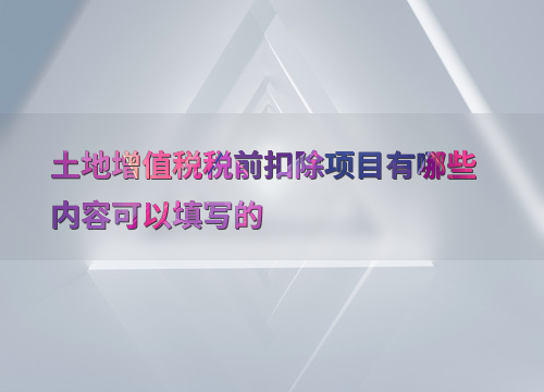 根据现行规定,可以填写的土地增值税税前扣除项目主要包括:取得土地使用权所支付的金额,包括为取得土地使用权所支付的地价款和按国家统一规定交纳的有关费用;开发土地的成本、费用,涵盖土地征用及拆迁补偿费、前期工程费、建筑安装工程费、基础设施费、公共配套设施费等;新建房及配套设施的成本、费用,即房地产开发企业开发建造的与清算项目配套的公共设施成本;与转让房地产有关的税金,如营业税、城市维护建设税、教育费附加等;以及财政部规定的其他扣除项目。