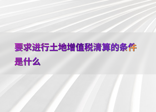 根据《中华人民共和国土地增值税暂行条例》及实施细则的规定,土地增值税清算的条件包括但不限于以下几点: 一是房地产开发项目全部竣工、完成销售;二是整体转让未竣工决算房地产开发项目的;三是直接转让土地使用权的。这些条件确保了在房地产交易过程中,税务机关能够准确计算应缴税款,避免税收流失。