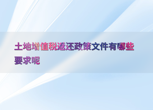 具体而言,政策文件对申请土地增值税返还有明确的要求: