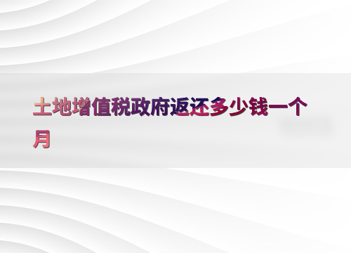 具体到每个月的土地增值税返还金额,并没有一个固定的数值。这取决于多个因素,包括但不限于项目的规模、所在地区的经济发展水平以及具体的税收优惠政策。例如,某些地区可能会根据项目投资总额的一定比例进行返还,公式为:$返还金额 = 投资总额 × 返还比例。此外,不同行业的企业可能享受不同的返还标准,如制造业和服务业在土地增值税返还上可能存在差异。