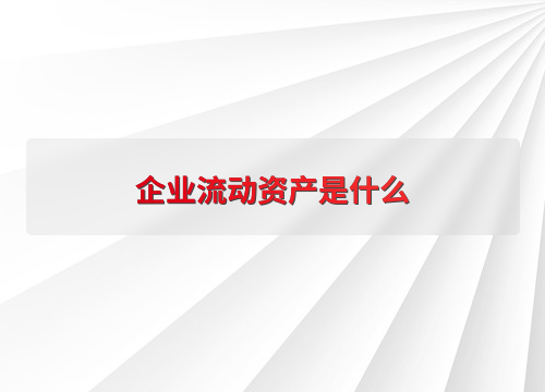 企业流动资产是指那些预计在一个营业周期内(通常为一年)可以变现或耗用的资产。