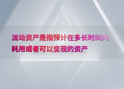 流动资产是指预计在一个正常的营业周期内或一个会计年度(通常为12个月)内耗用或者可以变现的资产。