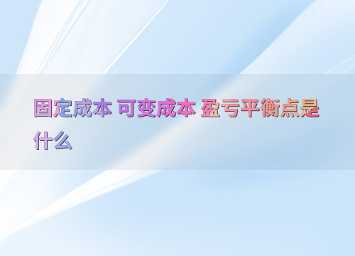 固定成本 可变成本 盈亏平衡点是什么